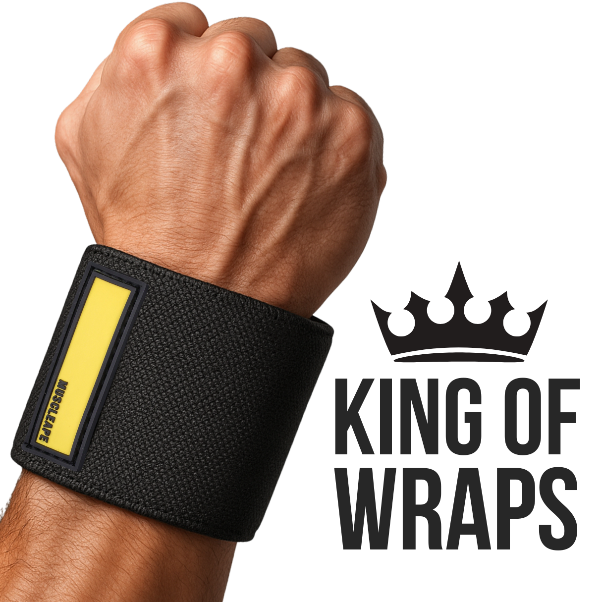 Muscleape Original Black Wrist Wraps for Weightlifting – Adjustable Gym Wrist Support with Thumb Loop– Flexible Lifting Straps for Men & Women – Powerlifting, Bench Press, CrossFit & Other Sports. | Powerlifting Wrist Support Gym | Muscleape