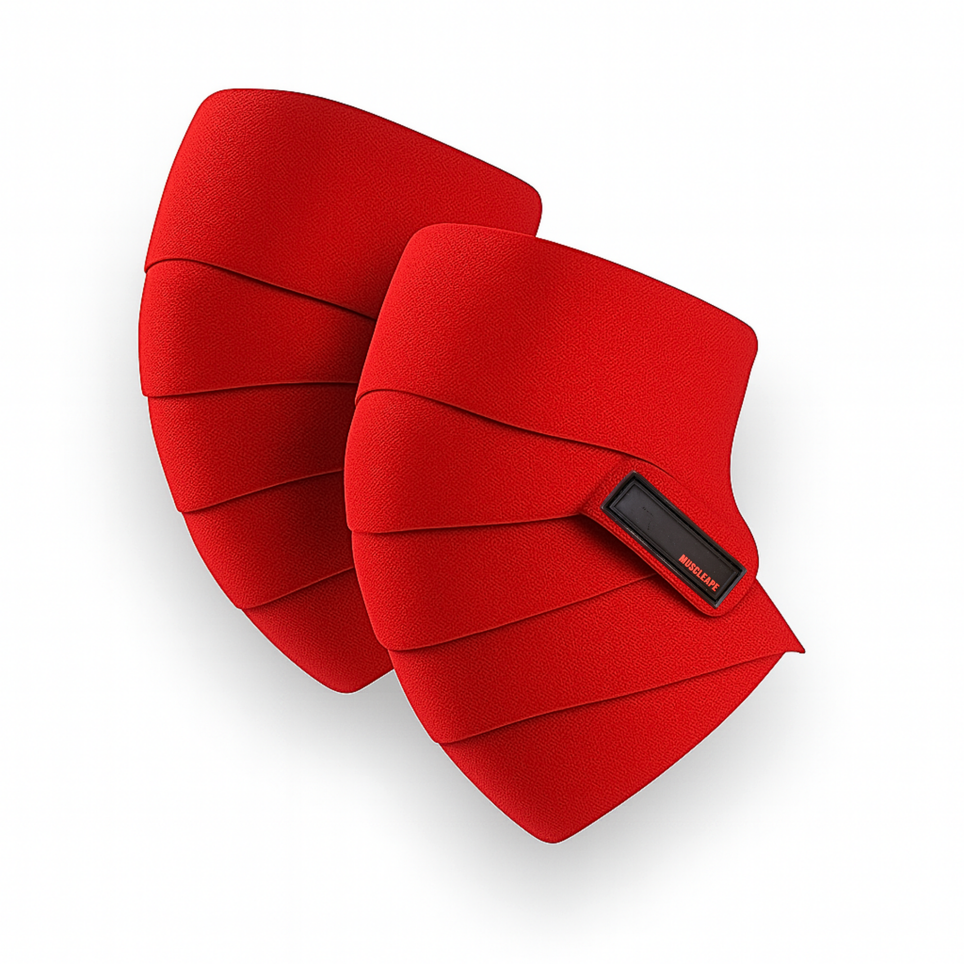 Muscleape 2 Meter Knee & Joint Support Wraps – SuperFabric Elastic Compression Straps for Squats, Leg Press & Powerlifting | Adjustable Gym Support for Men & Women (Red)