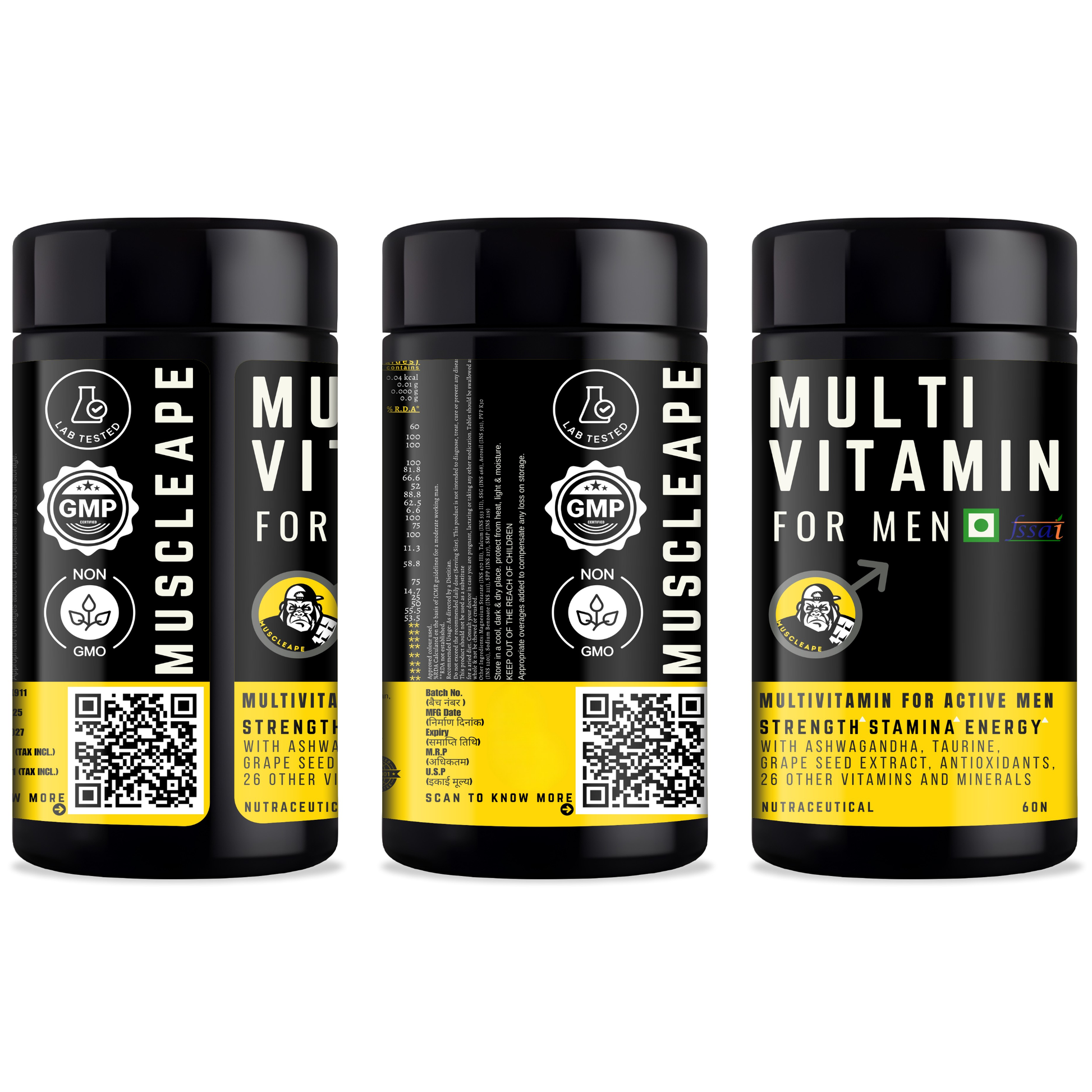Muscleape Multivitamin for Men | 60 Veg Tablets | 26 Vitamins & Minerals