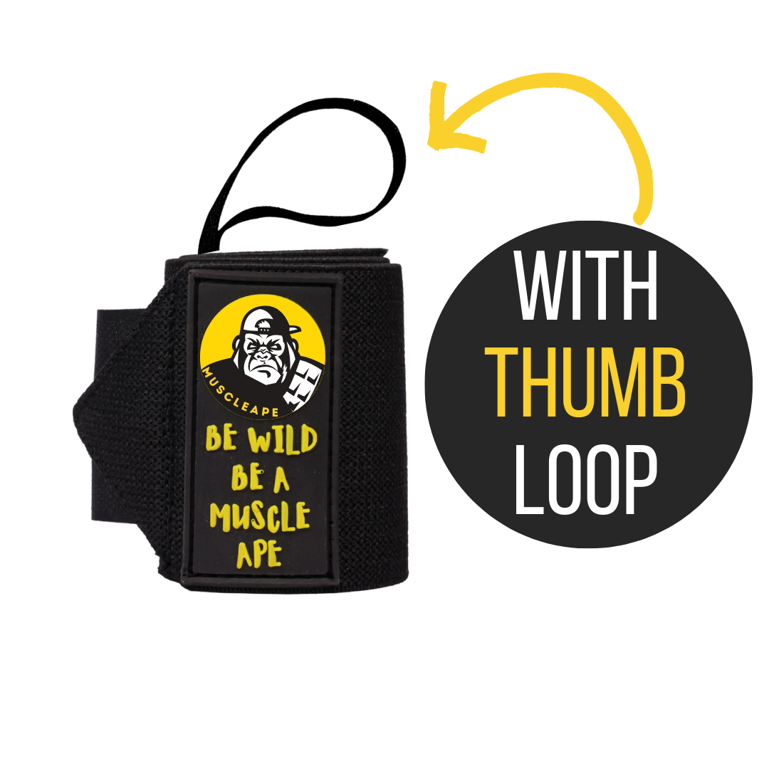 Muscleape Original Black Wrist Wraps for Weightlifting – Adjustable Gym Wrist Support with Thumb Loop– Flexible Lifting Straps for Men & Women – Powerlifting, Bench Press, CrossFit & Other Sports. | Powerlifting Wrist Support Gym | Muscleape