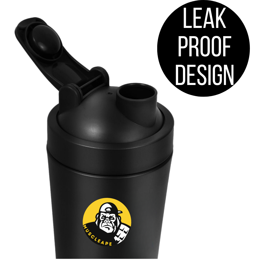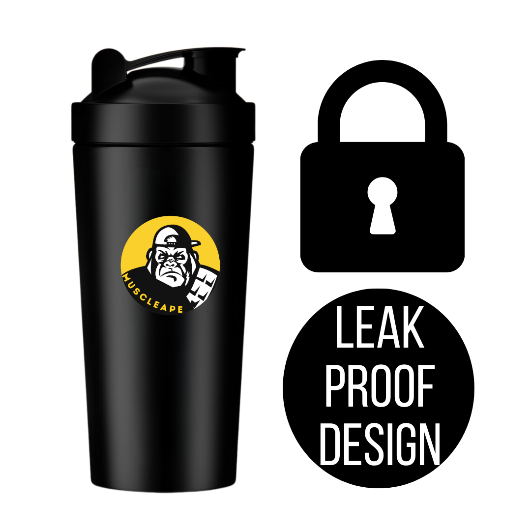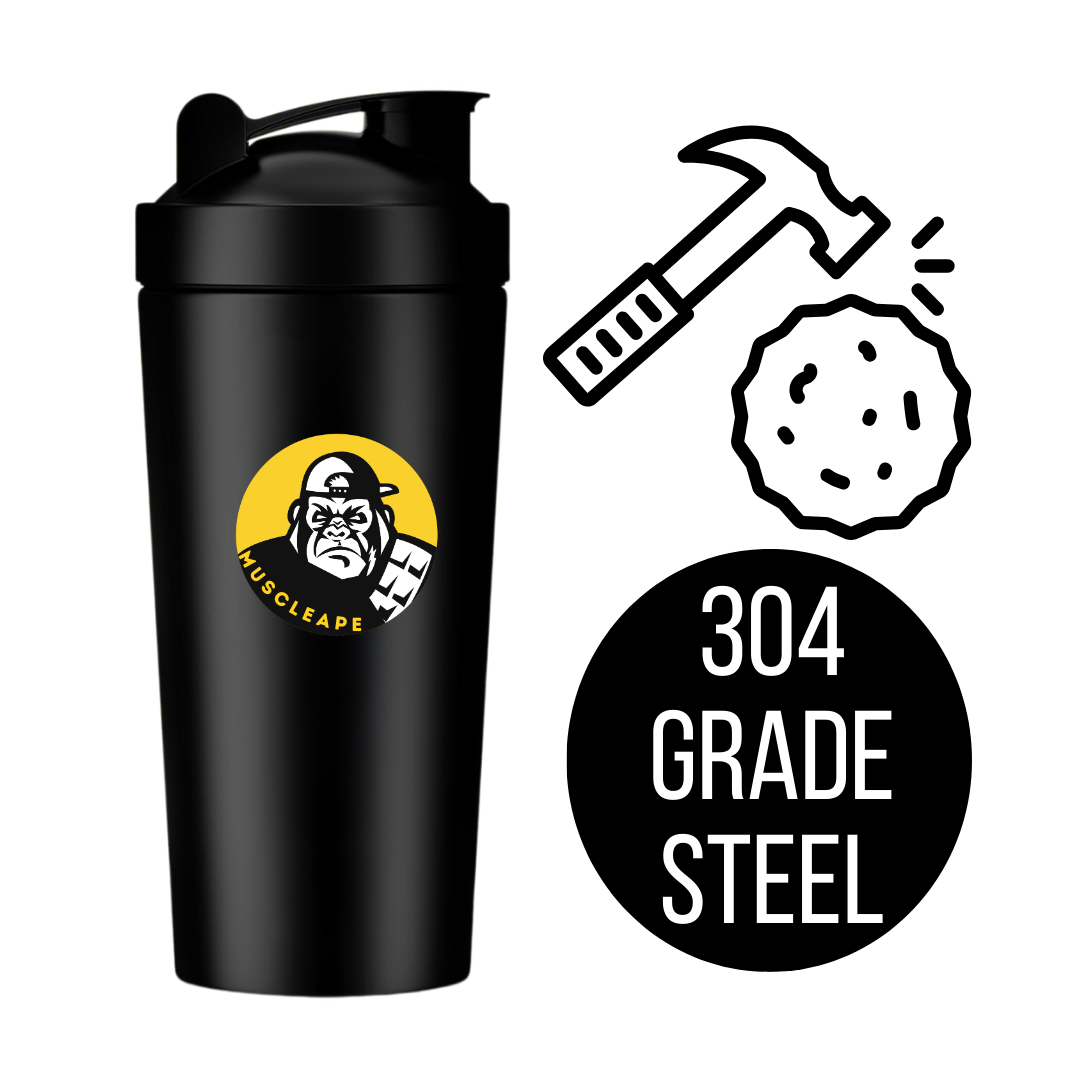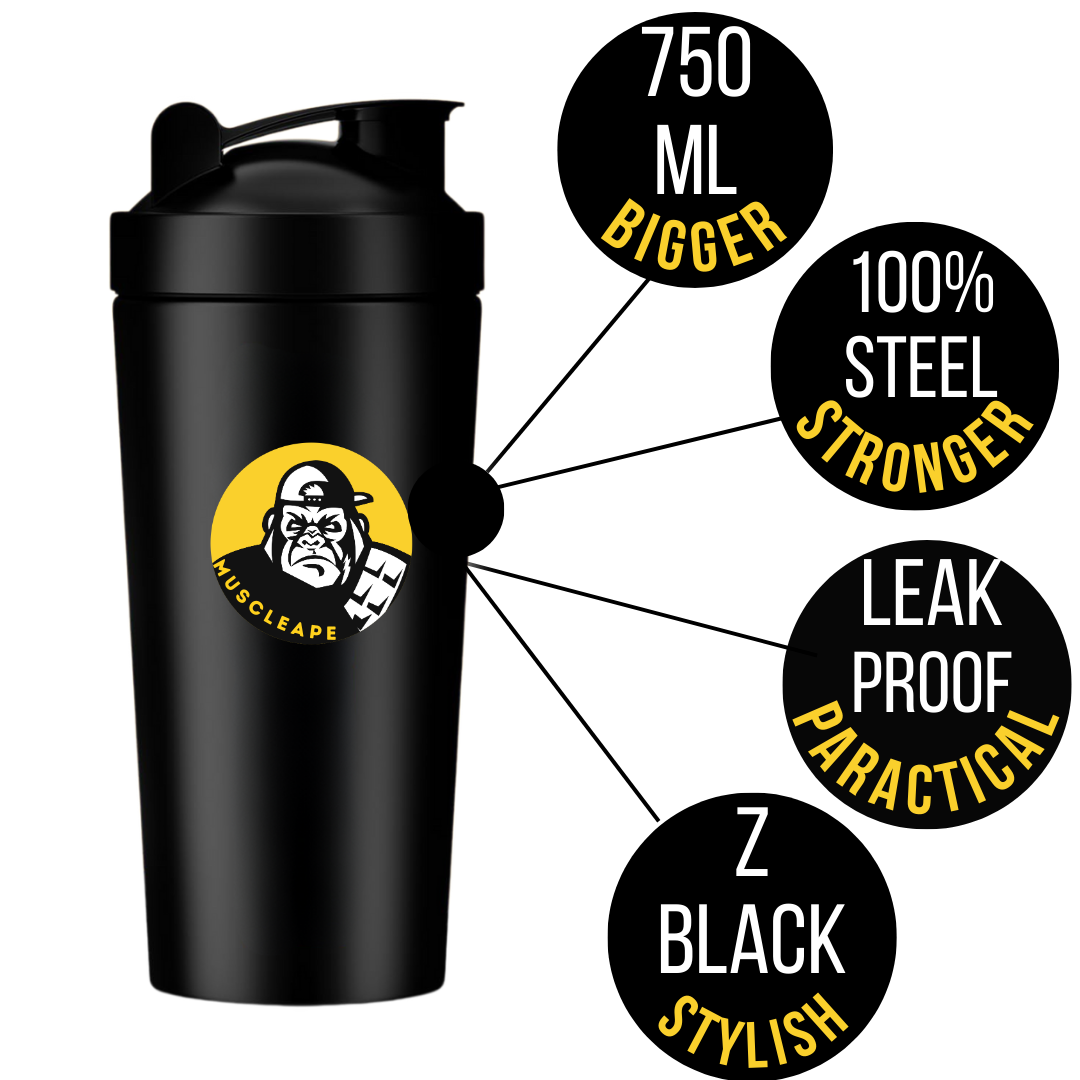 - Muscleape Gym Shaker Steel Comes With Leak Proof Cap, Rounded Corners For Easy Cleaning, 750ml Capacity, 100% Leak Proff Guarantee, 100% Stainless Steel. It Is Made For The Bold And Made For You.