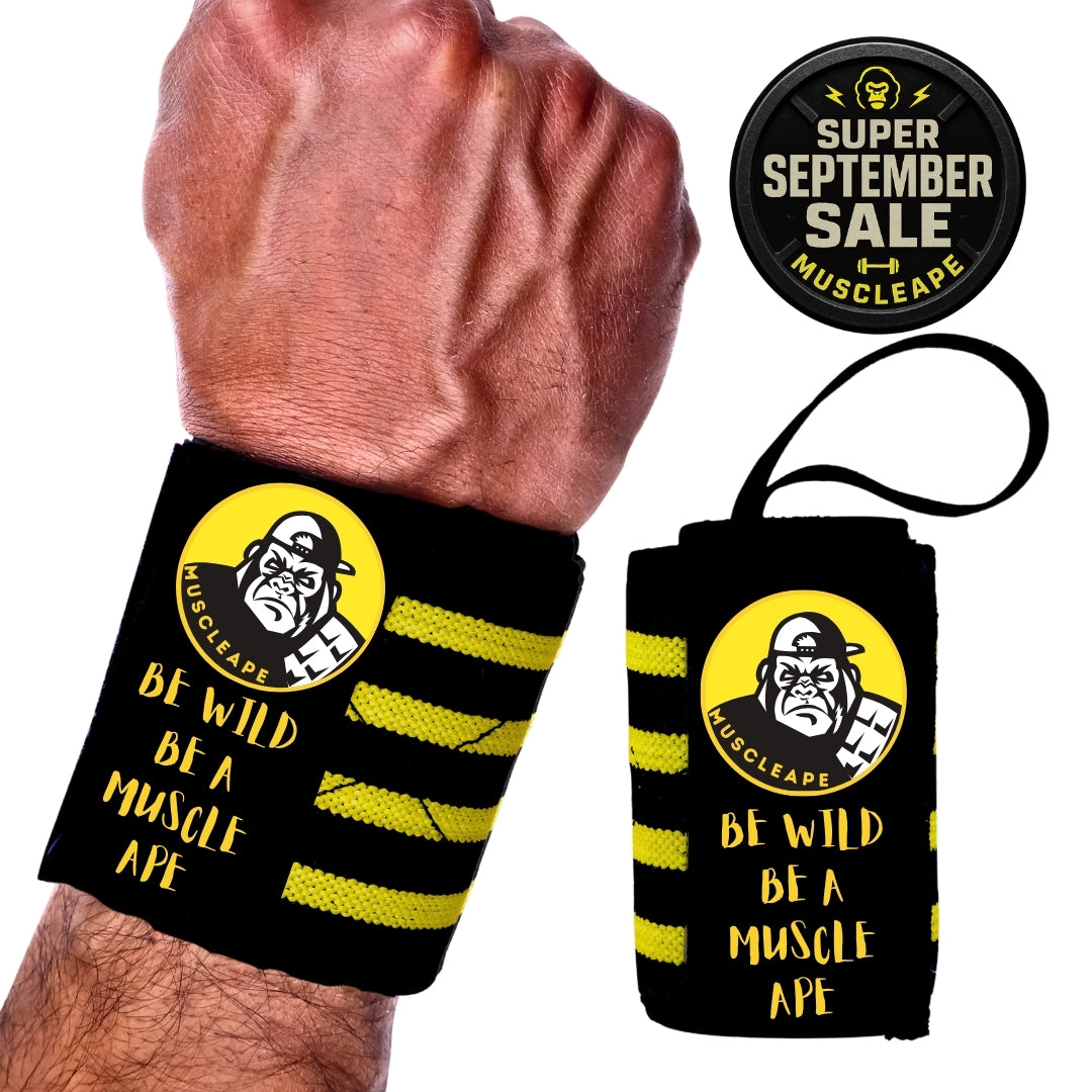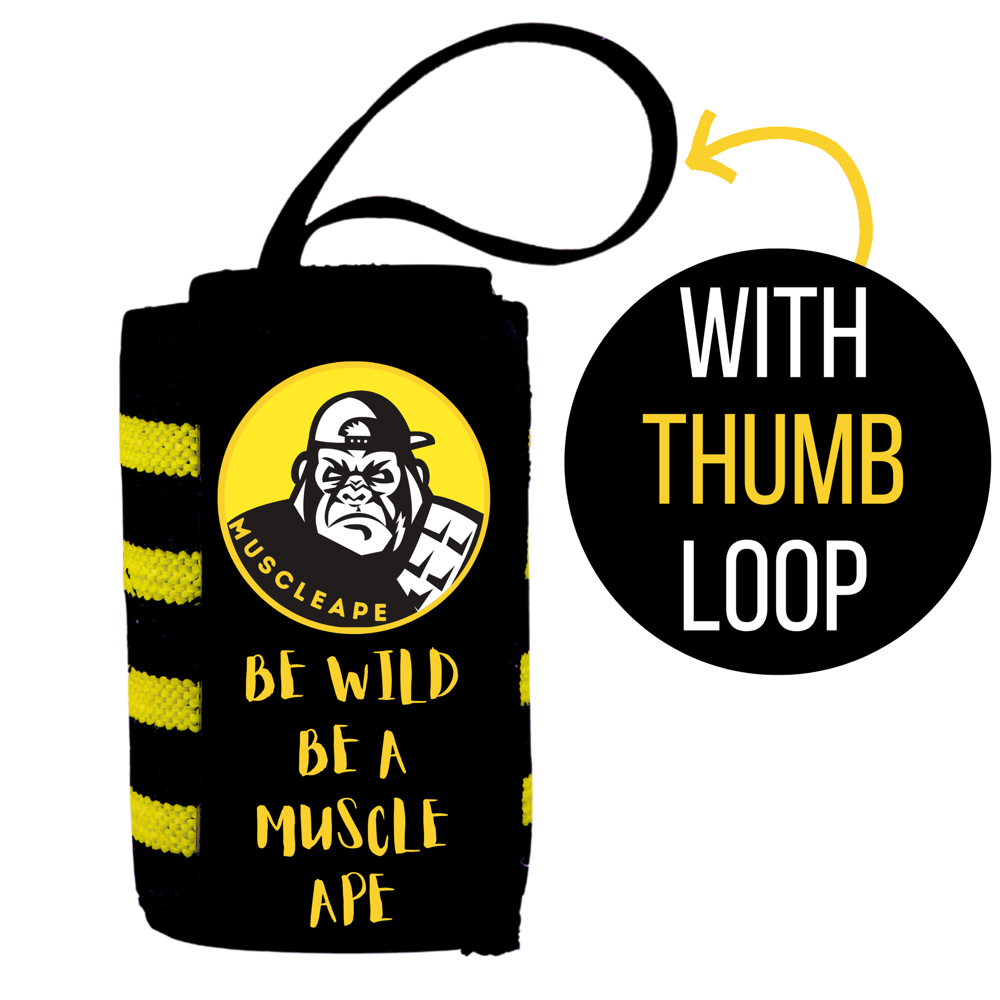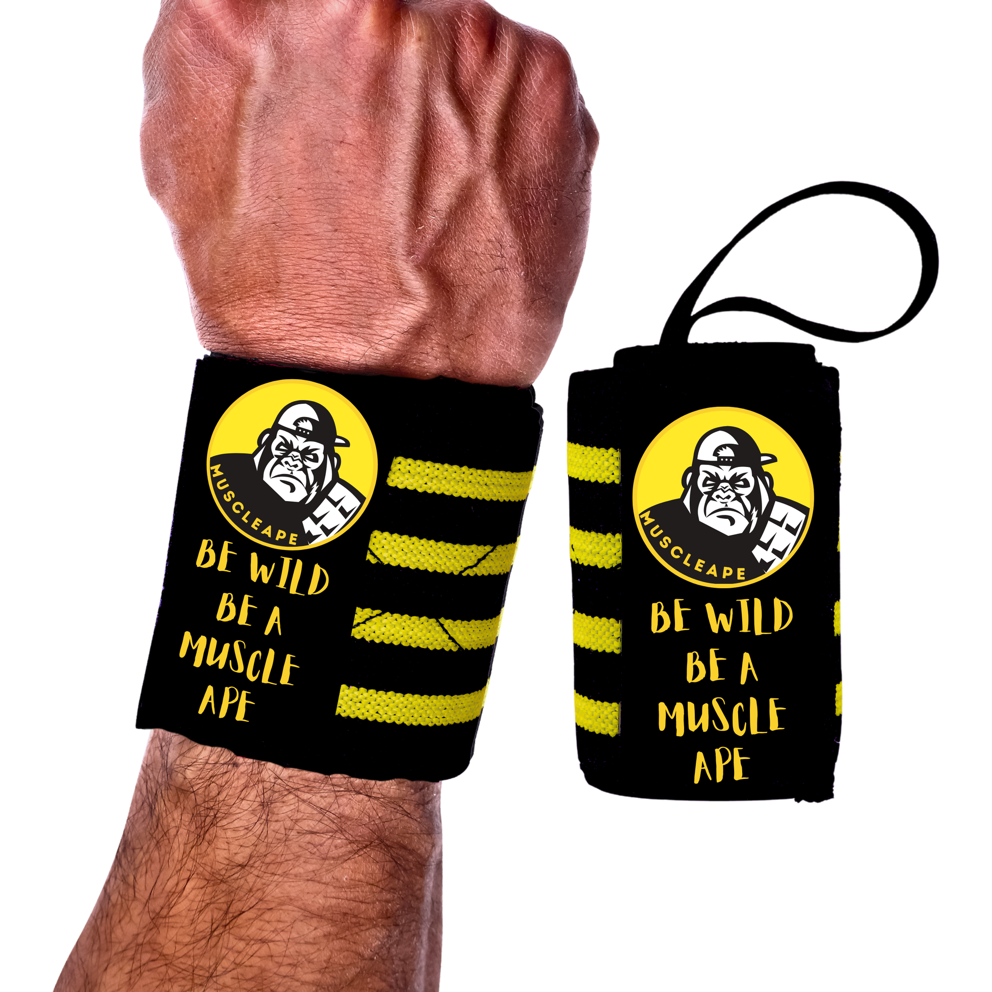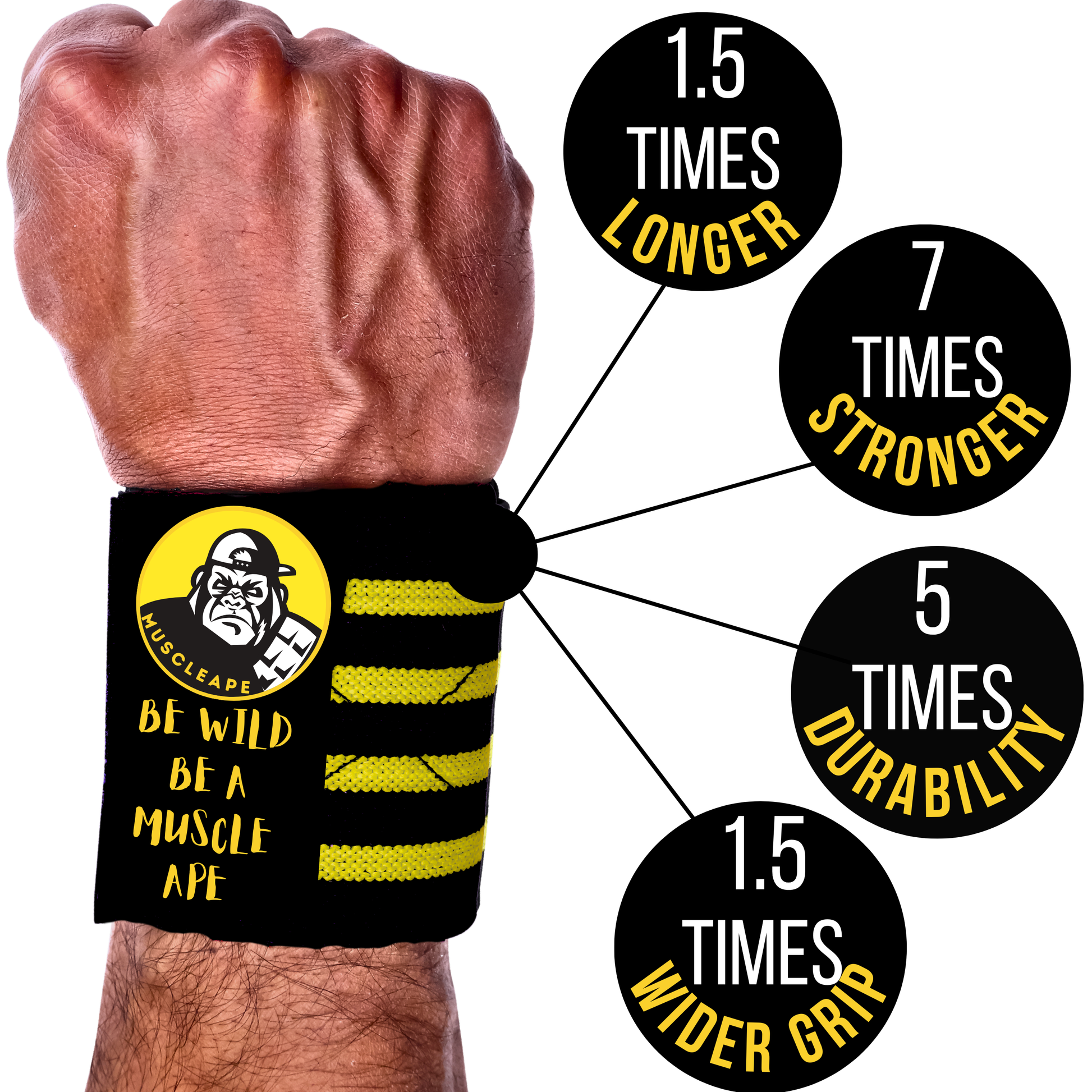 Muscleape Wrist Wraps for Weightlifting – Adjustable Gym Wrist Support with Thumb Loop– Flexible Lifting Straps for Men & Women – Powerlifting, Bench Press, CrossFit & Other Sports. Bumblebee Edition | Powerlifting Wrist Support Gym | Muscleape